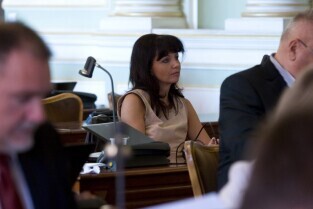 Sierpniowa sesja Rady Miasta Gdańska w Nowym Ratuszu. Nz. radna Żaneta Geryk