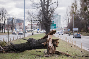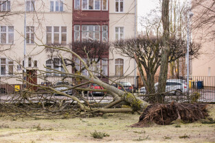 Gdańsk, al. Zwycięstwa. Skutki wichury. Kilkadziesiąt drzew ucierpiało w Gdańsku