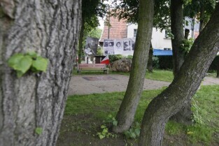Gdańsk Strzyża. Uroczystość nadania imienia Krzysztofa Kolbergera, urodzonego w Gdańsku aktora i reżysera, skwerowi położonemu przy ulicy Karłowicza. Nz. Przewodniczący Komisji Kultury i Promocji RMG Marek Bumblis i córka patrona Julia Kolberger