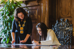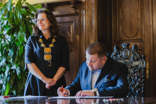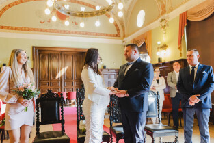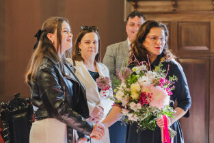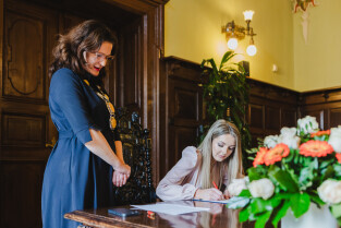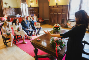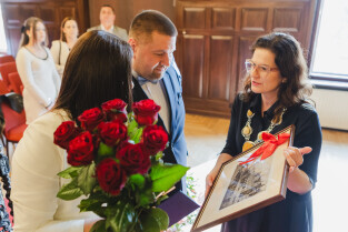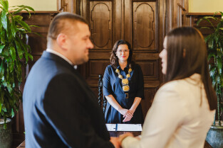 Gdańsk, ul Wały Jagiellońskie. Ślub Pani Dominiki i Pana Bartłomieja. Ślubu udzieliła Prezydent Gdańska Aleksandra Dulkiewicz