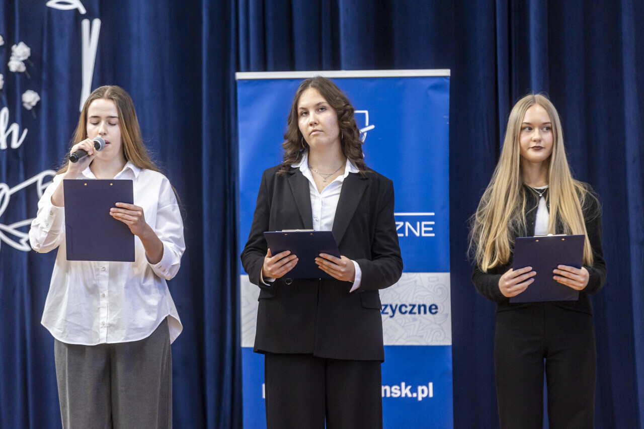 Gdańsk. Uroczyste ślubowanie pierwszych klas w X Liceum Ogólnokształcącym im. Lecha Bądkowskiego połączone z odsłonięciem muralu dydykowanego patronowi szkoły. W uroczystościach udział wzięli między innymi Emilia Lodzińska, Zastępczyni Prezydenta Miasta Gdańska ds. rozwoju przestrzennego i mieszkalnictwa, radni Andrzej Kowalczys i Wojciech Błaszkowski oraz Ryszard Muszytowski, Dyrektor Wydziału Edukacji w gdańskim magistracie. Gościem specjalnym była córka Lecha Bądkowskiego, Sławina Bądkowska-Kosmulska.