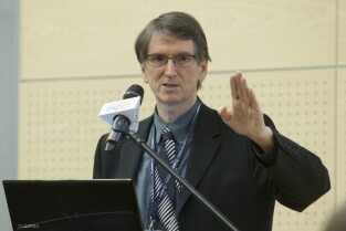 Międzynarodowy kongres "Smart Metropolia" poświęcony rozwojowi miast i obszarów metropolitalnych. Gdańsk, Amber Expo. Nz. prof. Brian Evans (Glasgow School of Art)