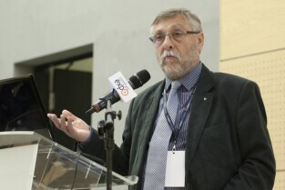 Międzynarodowy kongres "Smart Metropolia" poświęcony rozwojowi miast i obszarów metropolitalnych. Sesja plenarna. Gdańsk, Amber Expo. Nz. prof. Tadeusz Markowski