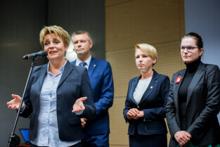 Gdańsk, Amber Expo. Smart Metropolia. Konferencja prasowa “koszyk dobrych praktyk” oraz podpisanie paktu Klimatycznej Koalicji Miast i Gmin. Nz. Prezydent Gdańska Aleksandra Dulkiewicz