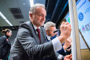 Gdańsk, Amber Expo. Smart Metropolia. Konferencja prasowa “koszyk dobrych praktyk” oraz podpisanie paktu Klimatycznej Koalicji Miast i Gmin