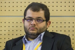 Kongres Smart Metropolia. Sesja Plenarna "Metropolie wobec zagrożeń XXI w.: otwartość a bezpieczeństwo". Gdańsk, Amber Expo. Nz. dr Tomasz Grzyb (Uniwersytet SWPS, NATO School)