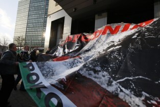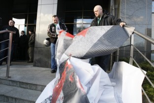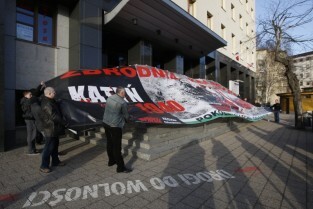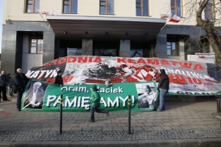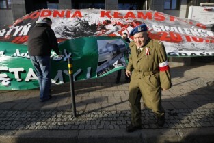 Baner z napisem "Zbrodnia Kłamstwa" i "Katyń 1940 - Smoleńsk 2010" przygotowany przez członków Federacji Młodzieży Walczącej oraz kibiców Lechii Gdańsk. Kontrowersyjny baner miał tego dnia zawisnąć na budynku Solidarności w Gdańsku, ale z powodu silnego wiatru został jedynie zaprezentowany przez trzymających go kibiców Lechii.