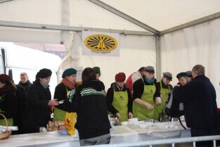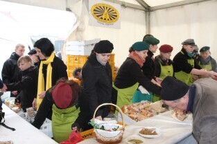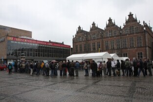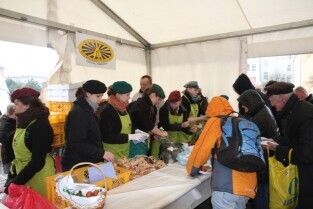 Gdańsk, Targ Węglowy. Wielkanocne śniadanie dla ubogich i bezdomnych zorganizowane przez gdańskich restauratorów.