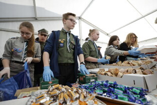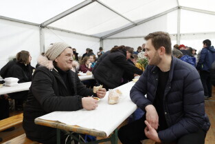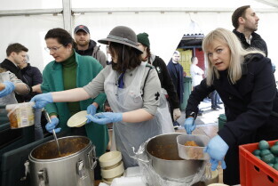 Gdańsk. Śniadanie wielkanocne dla osób potrzebujących i ubogich. Po raz pierwszy wspólnie przygotowali je restauratorzy i hotelarze z Polskiej Izby Gospodarczej oraz Kuchnia św. Mikołaja, działająca przy Duszpasterstwie Akademickim „Górka”.