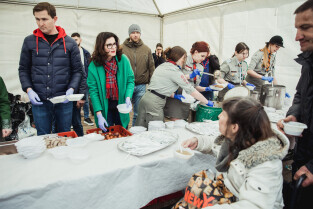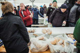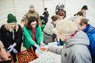Gdańsk, ul. Szeroka. Śniadanie wielkanocne dla potrzebujących