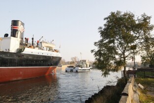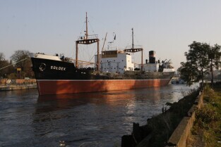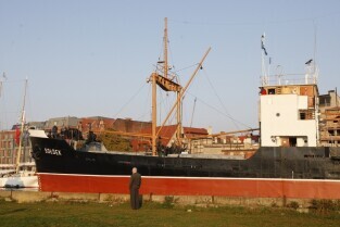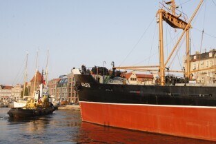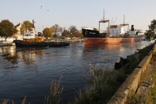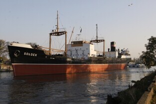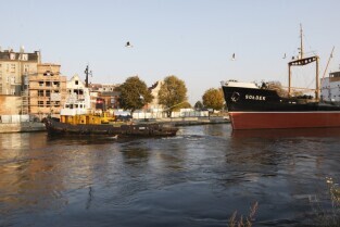 Statek muzeum "Sołdek" odpływa na kolejny remont do Gdańskiej Stoczni "Remontowej". Podczas prac wyremontowane zostanie m.in. skrajnik dziobowy oraz kilka ładowni. Gdańsk, widok z Wyspy Ołowianka
