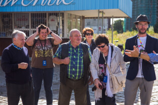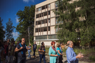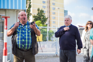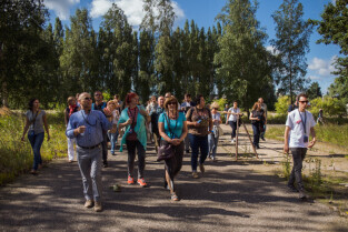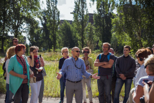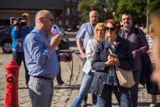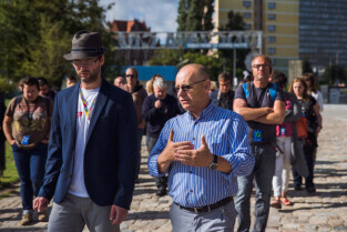 Gdańsk. Solidarity of Arts. Spacer po Stoczni Gdańskiej. Nz. Jerzy Borowczak