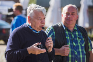 Gdańsk. Solidarity of Arts. Spacer po Stoczni Gdańskiej. Nz. Bogdan Borusewicz