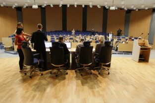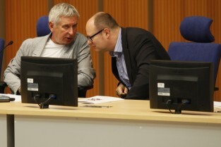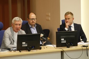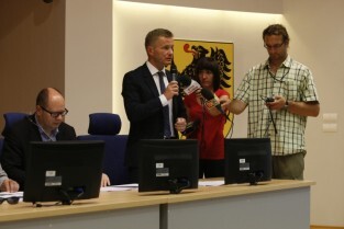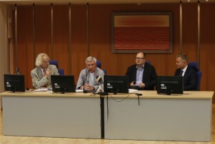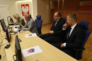 Konferencja prasowa poświęcona organizacji Festiwalu Solidarity of Arts, w której udział wzięli: Członek Zarządu Województwa Pomorskiego Ryszard Świlski, Prezydent Gdańska Paweł Adamowicz, Dyrektor Artystyczny Festiwalu Krzysztof Materna, Przewodniczący Rady Programowej Festiwalu Władysław Zawistowski. Gdańsk, Sala Okrągła Urzędu Marszałkowskiego
