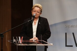 Konferencja "Solidarność dla przyszłości - Europa i świat 30 lat po zwycięstwie polskiej Solidarności". Gdańsk, Filharmonia Bałtycka. Nz. Janina Ochojska.