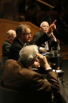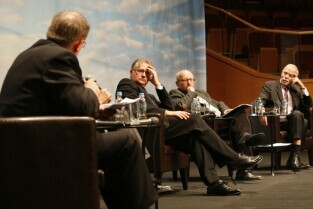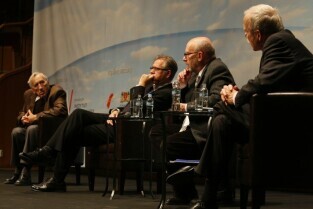 Konferencja "Solidarność dla przyszłości - Europa i świat 30 lat po zwycięstwie polskiej Solidarności". Gdańsk, Filharmonia Bałtycka. Nz. debata, w której udział wzięli: prof. Edmund Wnuk-Lipiński, prof. Paweł Śpiewak, prof. Jan Zielonka (nz), były Premier RP Tadeusz Mazowiecki oraz były Prezydent RP Lech Wałęsa
