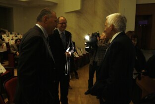 Konferencja Solidarność narodów, demokracja i wolność mediów XXI wieku, w której uczestniczyli działacze i dziennikarze z krajów Afryki północnej objętych rewolucją. Gdańsk, Akademia Muzyczna. Nz. od prawej: Przewodniczący Parlamentu Europejskiego Jerzy Buzek, Prezydent Gdańska Paweł Adamowicz