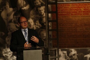 Konferencja Solidarność narodów, demokracja i wolność mediów XXI wieku, w której uczestniczyli działacze i dziennikarze z krajów Afryki północnej objętych rewolucją. Gdańsk, Akademia Muzyczna. Nz. Prezydent Gdańska Paweł Adamowicz