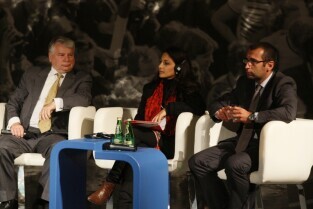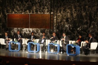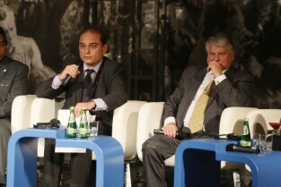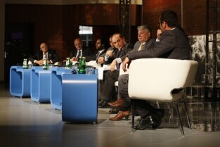 Konferencja Solidarność narodów, demokracja i wolność mediów XXI wieku, w której uczestniczyli działacze i dziennikarze z krajów Afryki północnej objętych rewolucją. Gdańsk, Akademia Muzyczna. Nz. panel dyskusyjny, który prowadził Dyrektor ECS Basil Kerski, a wziął w nim udział m.in. Marszałek Senatu RP Bogdan Borusewicz