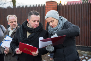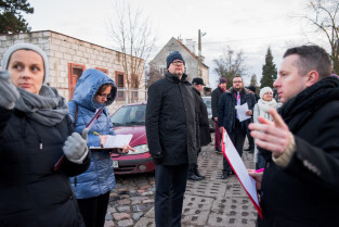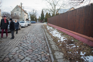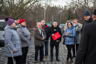 Gdańsk. W związku z przygotowaniami do spotkania Prezydenta Miasta Gdańska z mieszkańcami dzielnicy Krakowiec-Górki Zachodnie, odbył się obchód po dzielnicy, w którym uczestniczyli urzędnicy i radni dzielnicy. Nz. ul. Mrongowiusza