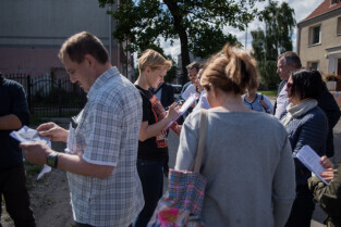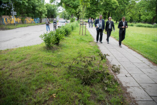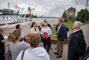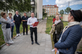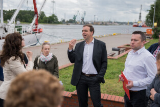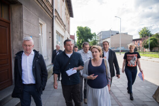 Gdańsk. W związku z przygotowaniami do spotkania Prezydenta Miasta Gdańska z mieszkańcami dzielnicy Nowy Port, odbył się obchód po dzielnicy, w którym uczestniczyli urzędnicy, radni dzielnicy oraz Aleksandra Dulkiewicz Z-ca Prezydenta ds. polityki gospodarczej