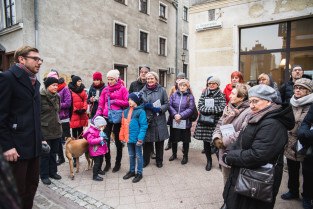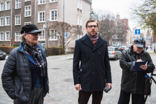 Gdańsk. Spacer kuratorski szlakiem odnowionych fasad kamienic na Głównym Mieście w ramach projektu “Gdańskie Fasady OdNowa”. Nz. (po środku) Michał Szymański Zastępca Dyrektora, Zarząd Dróg i Zieleni w Gdańsku