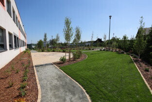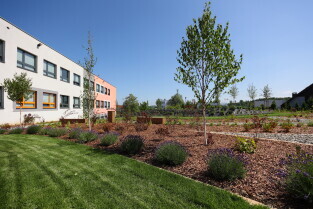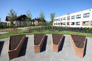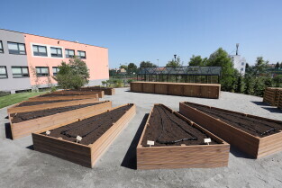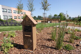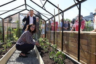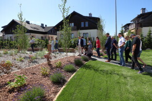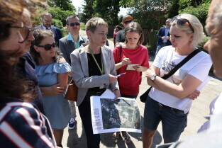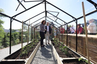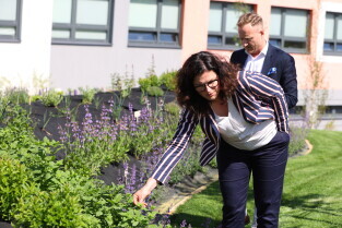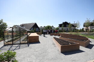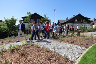 Gdańsk.Spacer po dzielnicy Kokoszki z Prezydent Gdańska Aleksandrą Dulkiewicz. Nz. Pozytywny Ogród Edukacyjny.
