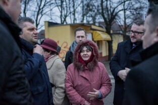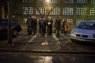 Gdańsk. Piotr Grzelak Z-ca Prezydenta ds. polityki komunalnej wraz z urzędnikami i przedstawicielami Rady Dzielnicy odbyli Spacer po dzielnicy Wrzeszcz Dolny
