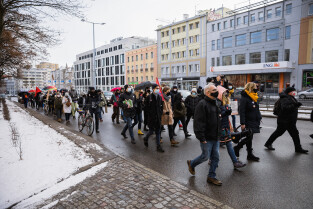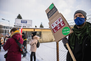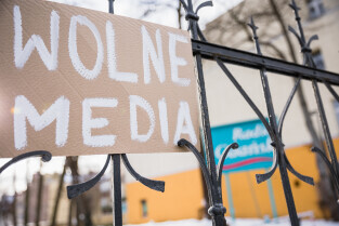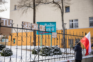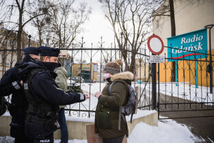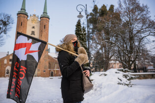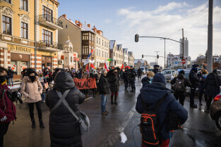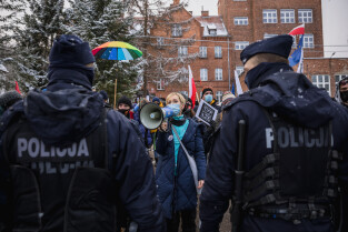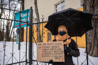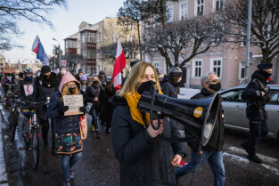 Gdańsk. Spacer protestacyjny Piekło Kobiet – Piekło Mediów Narodowych. Przemarsz rozpoczynał się pod budynkiem Radia Gdańsk i zakończył się przy bramie telewizji TVP3 Gdańsk