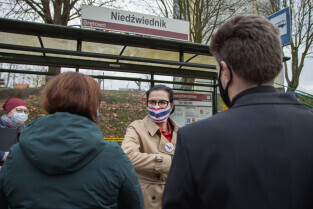 Gdańsk, pętla autobusowa Niedźwiednik. Spacer w Dzielnicy Brętowo z Prezydent Gdańska Aleksandrą Dulkiewicz