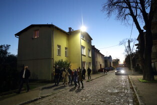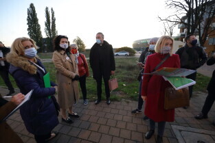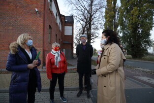 Gdańsk. Spacer w dzielnicy Letnica z Prezydent Gdańska Aleksandrą Dulkiewicz. Nz. Ul. Uczniowska.