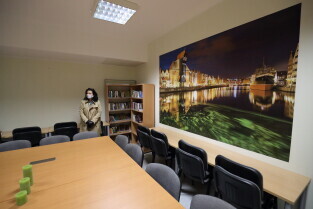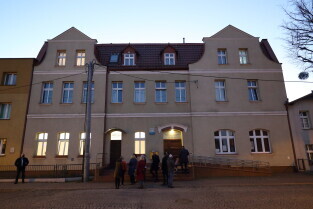 Gdańsk. Spacer w dzielnicy Letnica z Prezydent Gdańska Aleksandrą Dulkiewicz. Nz. Siedzibia Rady Dzielnicy przy ul. Uczniowskiej 22