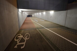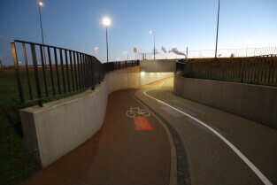 Gdańsk. Spacer w dzielnicy Letnica z Prezydent Gdańska Aleksandrą Dulkiewicz. Nz. Tunel dla pieszych i rowerzystów na Rondzie im. Tadeusza Mazowieckiego.