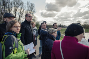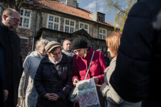 Gdańsk. Prezydent Paweł Adamowicz wraz z urzędnikami i przedstawicielami dzielnicy odbyli spacer po dzielnicy Olszynka przed spotkaniem z mieszkańcami