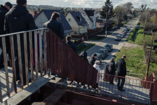 Gdańsk. Prezydent Paweł Adamowicz (Nz.) wraz z urzędnikami i przedstawicielami dzielnicy odbyli spacer po dzielnicy Olszynka przed spotkaniem z mieszkańcami. Nz. Maciej Kukla