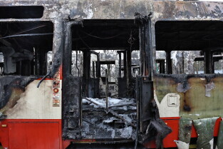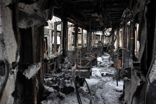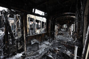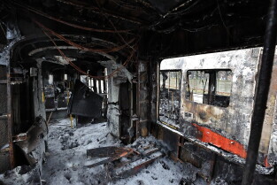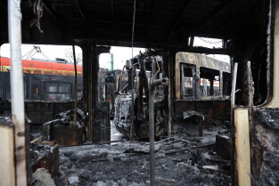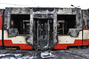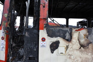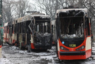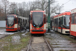 Spalone tramwaje po pożarze w zajezdni w Nowym Porcie.