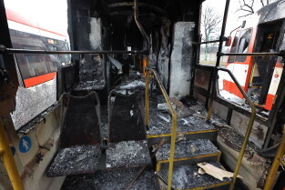 Gdańsk.Spalone tramwaje po pożarze w zajezdni w Nowym Porcie.