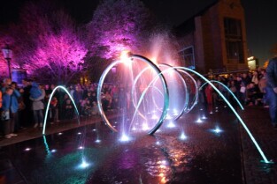 Plac im. Jana Heweliusza w Gdańsku. Spektakl „Opowieści Fontanny” Spektakl, przygotowany specjalnie z okazji inauguracji drugiego sezonu fontanny.