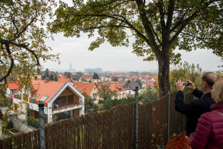 Gdańsk, okolica ul. Krzysztofa Arciszewskiego. Spojrzenie na Gdańsk. Otwarcie widoku we Wrzeszczu. Nz. Prof. Paweł Burkiewicz