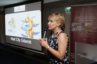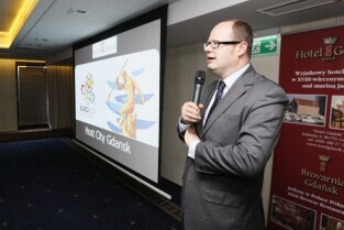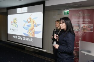 Ostatnie, podsumowujące działalność, posiedzenie Społecznego Komitetu Wsparcia Euro 2012. Komitet został powołany przez pomorskie środowiska gospodarcze pod patronatem Prezydenta Gdańska, a jednym z zadań jest współudział w programie budowy boisk przyszkolnych Junior Gdańsk 2012. Hotel Gdańsk przy ul. Szafarnia, sala konferencyjna Pacyfik-Atlantic