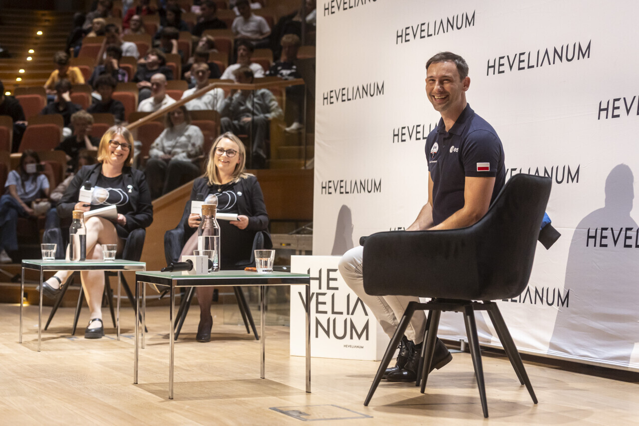 Gdańsk. Spotaknie młodzieży z astronautą Sławoszem Uznańskim-Wiśniewskim. W spotkaniu, które odbyło się w Filharmonii Bałtyckiej na Ołowiance wzięła udział Prezydent Aleksandra Dulkiewicz, jej zastępca Piotr Grzelak i Wicemarszałek województwa pomorskiego Marcin Skwierawski.