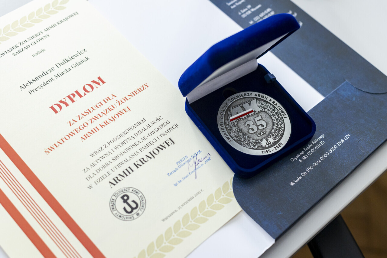 Gdańsk. Prezydent Aleksandra Dulkiewicz spotkała się z zarządem Światowego Związku Żołnierzy Armii Krajowej. Delegacji przewodniczył Przewodniczący kpt. hm. Janusz Komorowski