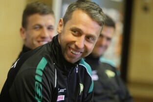 Spotkanie z zawodnikami Lechii Gdańsk powołanymi do Reprezentacji Polski na mecze w eliminacjach do Euro 2016. Nz Sebastian Mila