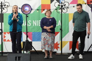 Gdańsk.Spotkanie Integracyjne Gdańskich NGO. Nz. Monika Chabior - Zastępczyni Prezydenta ds. rozwoju społecznego i równego traktowania, Beata Matyjaszczyk, przewodnicząca Gdańskiej Rady Organizacji Pozarządowych i Dawid Jastrzębski, prezes Regionalnego Centrum Wolontariatu w Gdańsku.