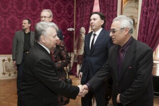 Gdańsk, Dom Uphagena. Spotkanie noworoczne Korpusu Konsularnego Trójmiasta oraz pomorskich samorządowców. Nz. po lewej Marszałek Senatu RP Bogdan Borusewicz