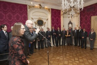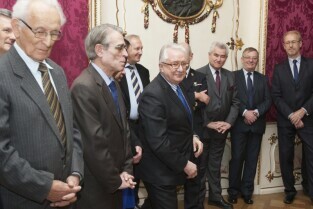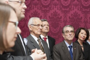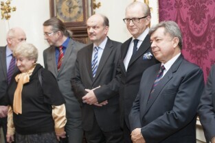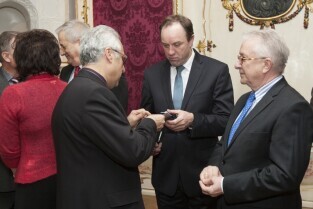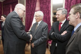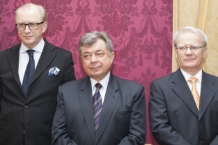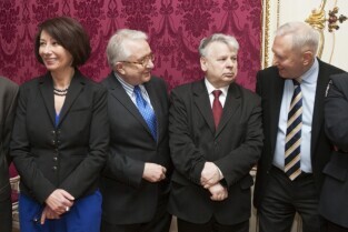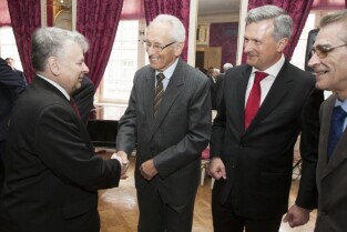 Gdańsk, Dom Uphagena. Spotkanie noworoczne Korpusu Konsularnego Trójmiasta oraz pomorskich samorządowców. Nz. po środku Marszałek Woj. Pomorskiego Mieczysław Struk, po prawej Senator RP Edmund Wittbrodt