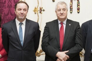 Gdańsk, Dom Uphagena. Spotkanie noworoczne Korpusu Konsularnego Trójmiasta oraz pomorskich samorządowców. Nz. po lewej Marszałek Senatu RP Bogdan Borusewicz i Konsul Honorowy Islandii w Polsce Stanisław Laskowski