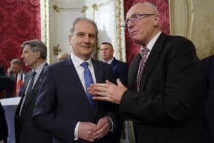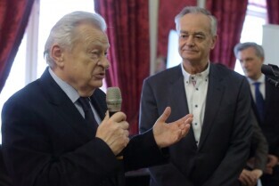 Gdańsk. Dom Uphagena. Oddział Muzeum Historycznego Miasta Gdańska. Spotkanie Noworoczne z Honorowymi Konsulami. Nz. Prezydent Sopotu Jacek Karnowski i Marszałek Senatu Bogdan Borusewicz.