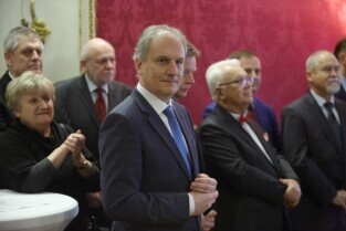 Gdańsk. Dom Uphagena. Oddział Muzeum Historycznego Miasta Gdańska. Spotkanie Noworoczne z Honorowymi Konsulami. Nz. Wojewoda Pomorski-Dariusz Drelich i