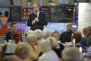 Spotkanie oplatkowe z Seniorami ze środmiescia Gdańska. Nz Prezydent Gdańska Paweł Adamowicz.